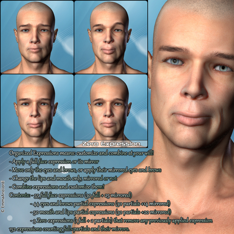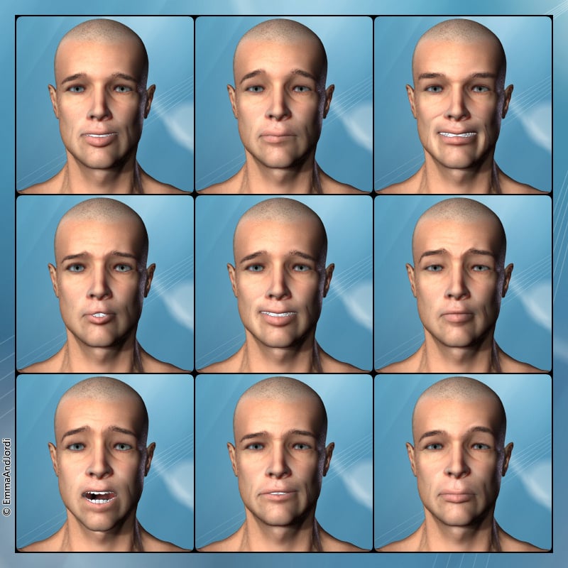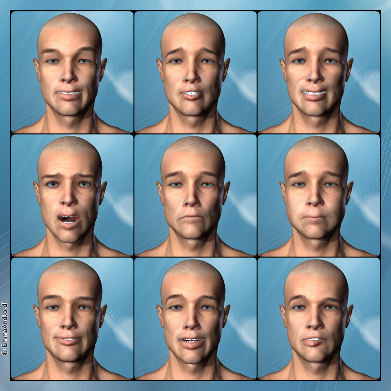 Natural expressions for real faces, with subtle asymmetries to enhance realism. Good taste expressions,