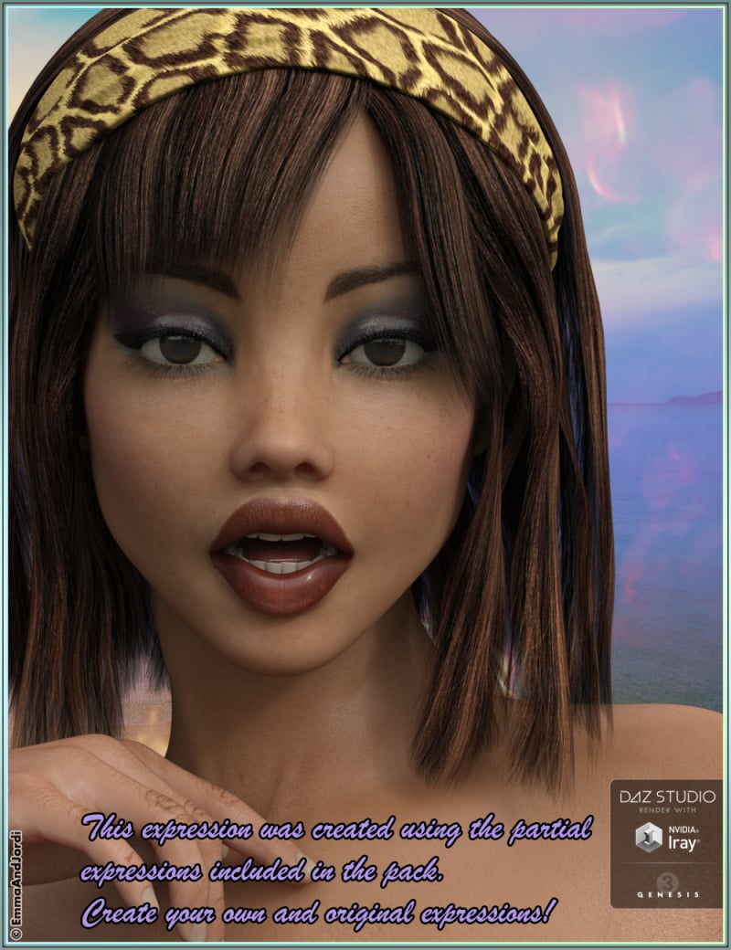 Don't let your characters have a poker face! Bring them to life! A versatile, customizable expression set for Sunny 7 And Genesis 3 Female(s)! Make them happy, angry, joyful, bored, excited, sad, surprised... make your characters feel, make them tell a unique story. A must have!