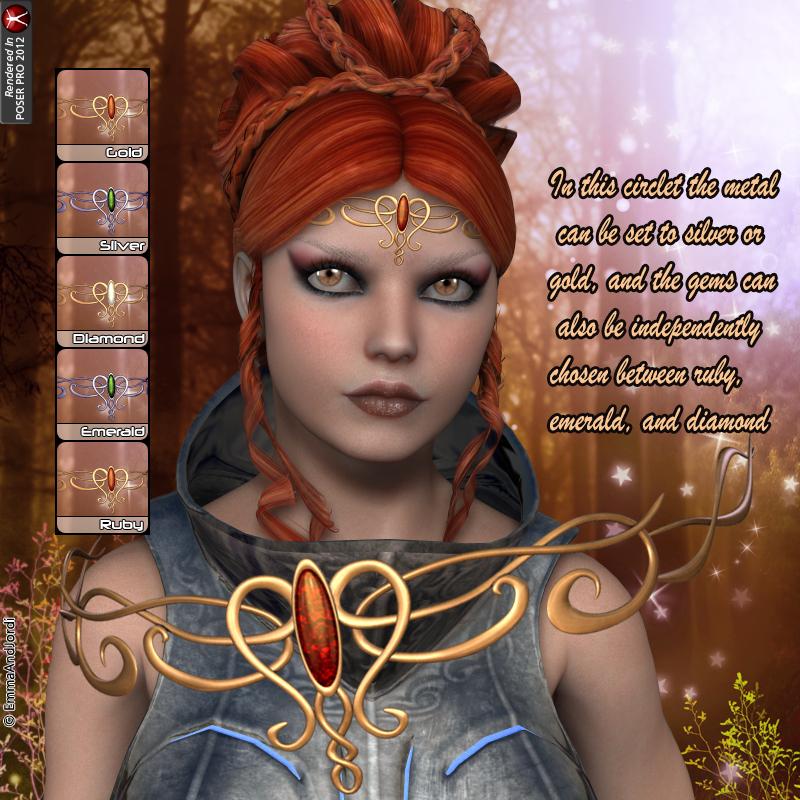 - Circlets 3 and 4 can be set to silver or gold, and the gems can also be independently chosen between ruby,