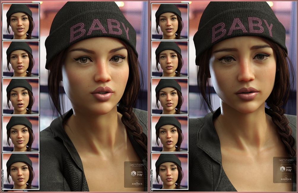 "Cool And Quirky" adds the degree of realism in expresions that you need for the new generation of Iray renders. Every detail in the face has been adjusted to make your characters look alive. Natural expressions for real faces, with subtle asymmetries to enhance realism. Good taste expressions, no grimaces.