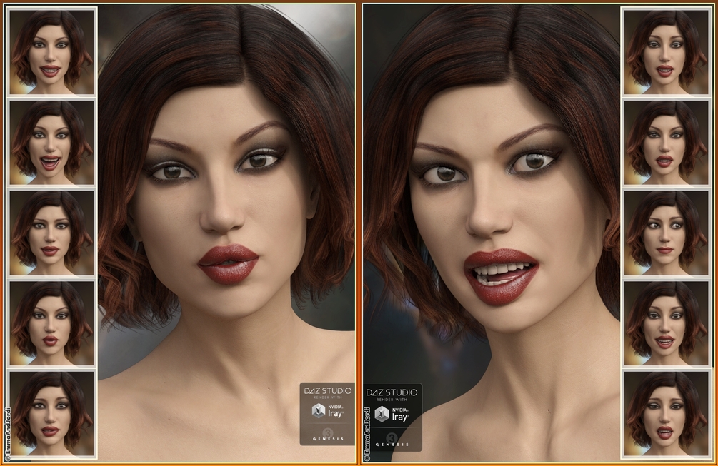 Don't let your characters have a poker face! Bring them to life! A versatile customizable expression set for Lilith 7 And Genesis 3 Female(s)! Make them happy, angry, joyful, bored, excited, sad, surprised... make your characters feel, make them tell a unique story. A must have!