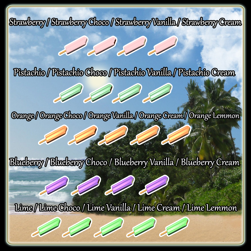 - 12 materials for Poser and 12 shaders for DAZ Studio to make your own ice pop flavors