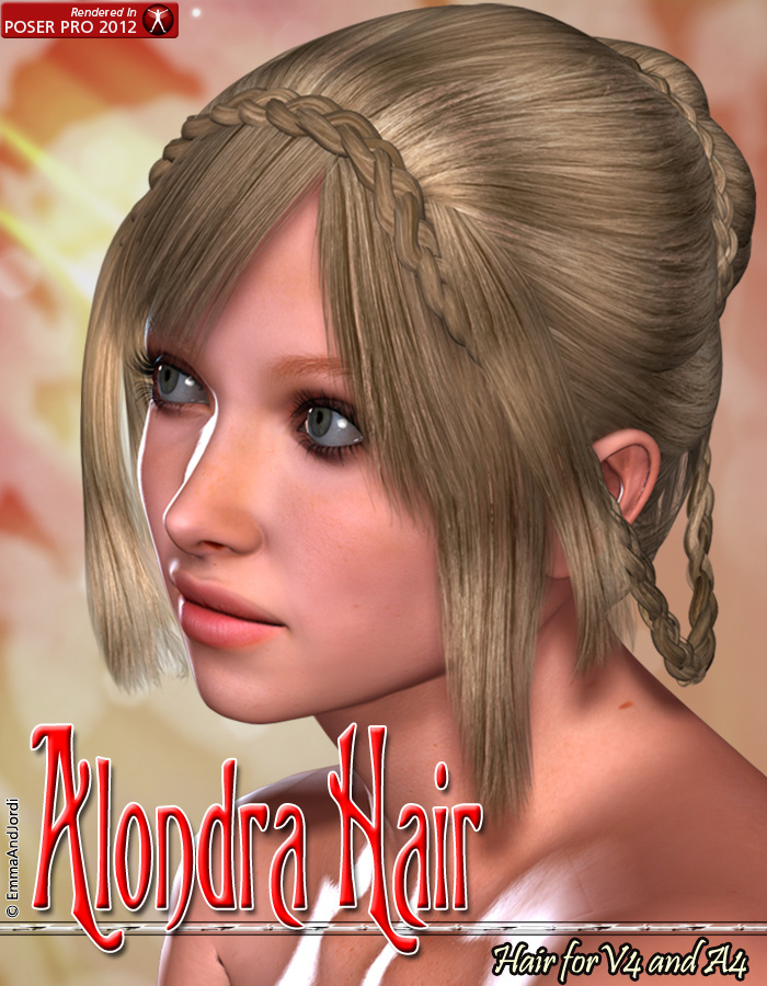 Alondra Hair is a hair model for Victoria 4 and Aiko 4 (using the fit morph included), with 29 morphs,